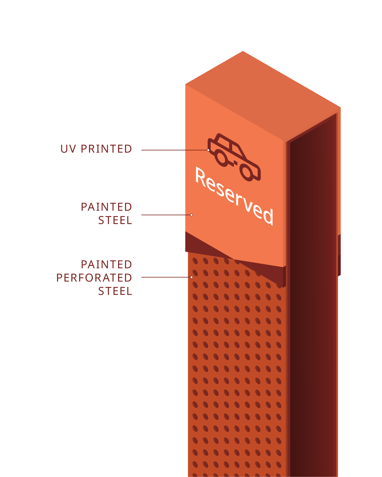 The visual style extends further into icons and signage, reinforcing the university’s brand presence at every interaction point across the campus.
